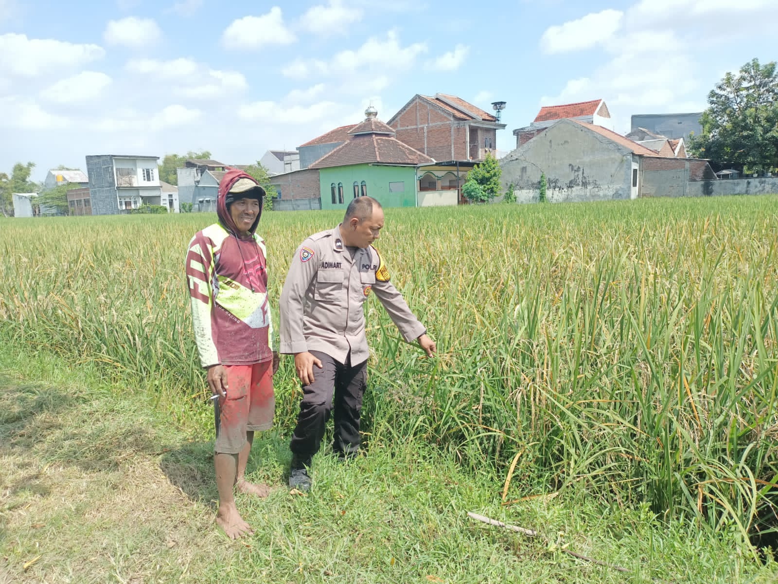 Dalam kegiatan sambang ke area persawahan milik warga di Desa Sidokepung, Aipda Adi Maret tidak hanya menjalin kedekatan, tetapi juga memberikan motivasi kepada para petani agar terus semangat mengelola lahan pertanian mereka, khususnya tanaman padi.