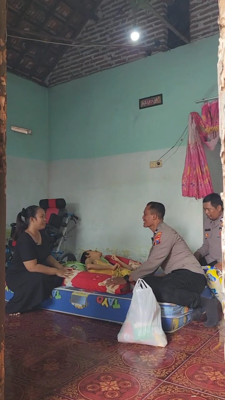 idetik.id | Jawa Timur – Bhabinkamtibmas Kebaron, Tulangan, Sidoarjo Aipda Lucky Ardian, Sabtu (8/2/2025), membesuk Evan Syahputra, 17 tahun, yang terbaring sakit karena polio sejak kecil.