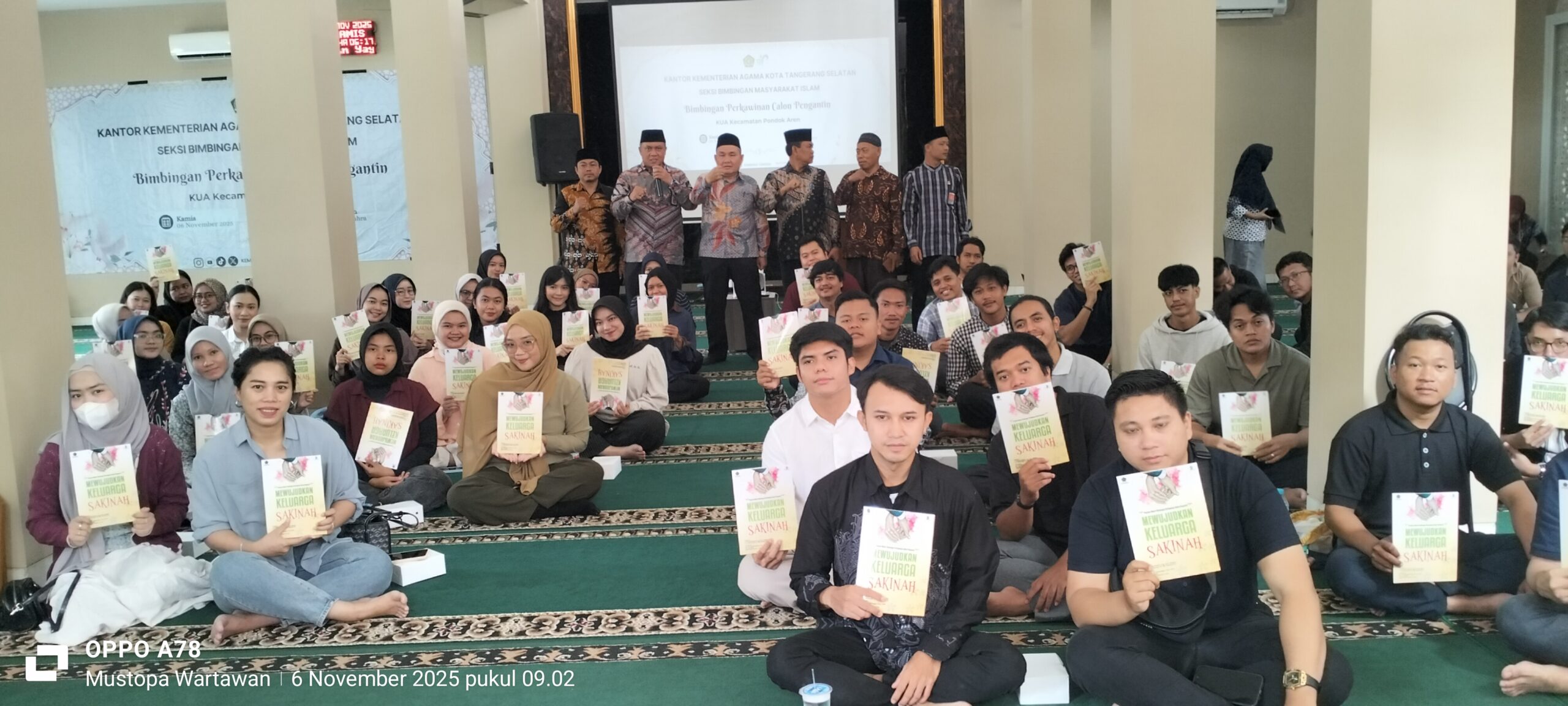 Bimbingan perkawinan (Bimwin)Tahap III Kantor Urusan Agama (KUA) Pondok Aren di Masjid AZ ZAHRA Graha Bunga berjalan lancar disambut antusias oleh 80 calon pengantin (Catin) yang dilaksanakan pada 5/11/25 dari jam 07.00-11.30 berjalan dengan khidmat kata sambutan dilakukan oleh H. Ahmad Rifaudin, S.Ag., M.Pd.selaku kepala kantor Kementrian Agama(kemenag)Kota Tangerang Selatan”Terima Kasih kepada para peserta Bimbingan perkawinan,Semoga dengan kita Ikhtiar mengikuti bimbingan perkawinan ini kita lebih memahami semua aturan dalam hidup rumah tangga dan menjadi keluarga yang sakinah,mawadah dan waromah,dengan ini bimbingan perkawinan resmi dibuka.”ujarnya.
