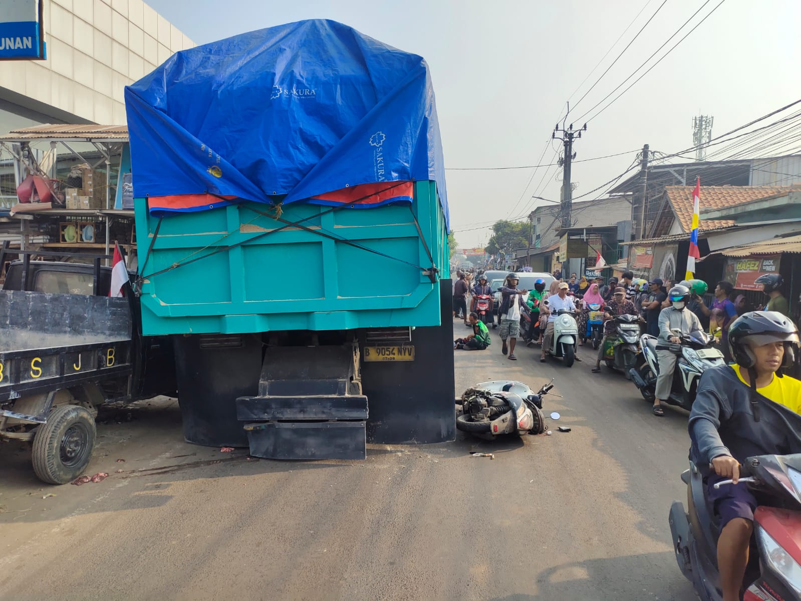 Kecelakaan lalulintas melibatkan sepeda motor Honda Scoopy bernomor polisi A 3979 ZG yang dikendarai ayah anak itu Ilman Sadewa (31), dengan dump truk bernomor polisi B 9054 NYV yang dikemudikan Mohammad Hilman (37), sopir asal Parung Panjang Bogor, Jawa Barat.