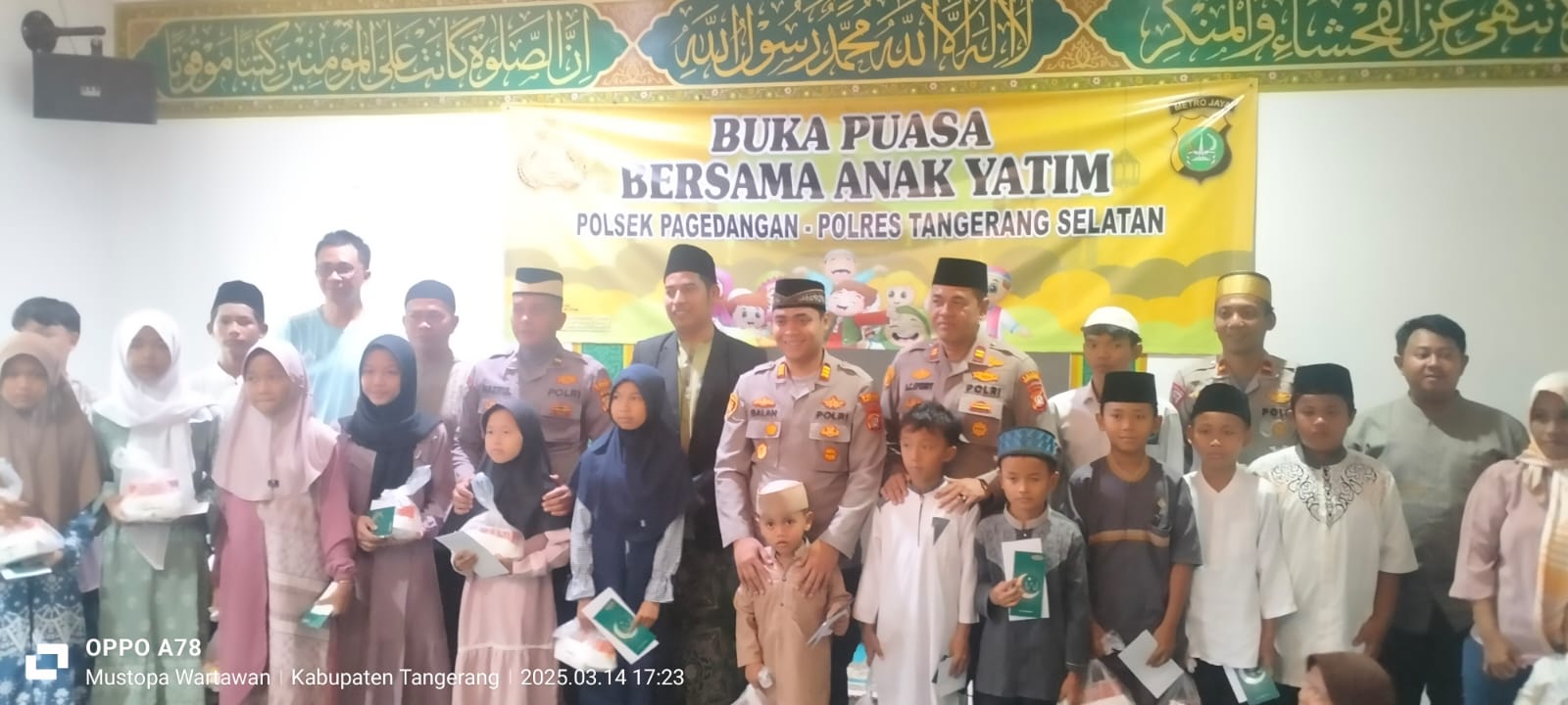 idetik.id | Kabupaten Tangerang – Kapolsek Pagedangan AKP Galan Adit Darmawan, S.T. K, S..I.K bersama jajaranya pada Jumat 14 Maret 2025 tepatnya di Mushola Polsek Pagedangan telah mengadakan Buka puasa bersama, berbagi takjil dan pemberian santunan.Adapun kegiatan ini dipimpin langsung oleh Kapolsek Pagedangan AKP Galan Adit Darmawan, S.TK, S.I.K. acara berjalan sangat meriah di isi oleh tausiah Ustadz Dian Nugraha sambil menunggu beduk magrib untuk berbuka puasa.
