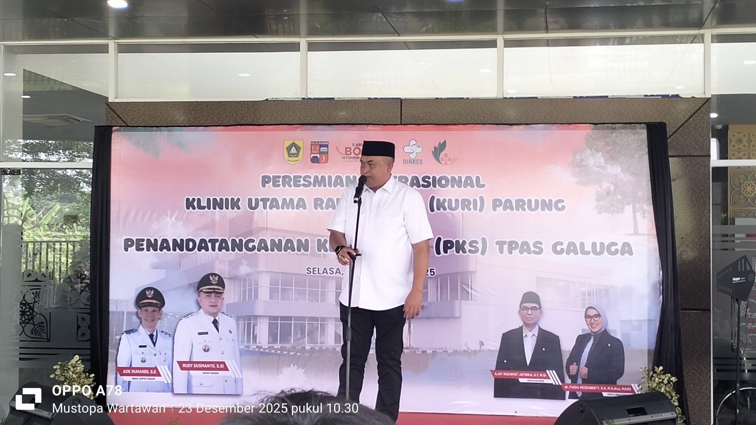 Bupati Bogor Rudy Susmanto meresmikan operasional klinik utama rawat inap Parung di Desa Cogreg, Kecamatan Parung, Kabupaten Bogor, Selasa 23 Desember 2025.Peresmian ini dihadiri SKPD Kabupaten Bogor, mantan Bupati Bogor Ade Yasin, dan Wali Kota Bogor.