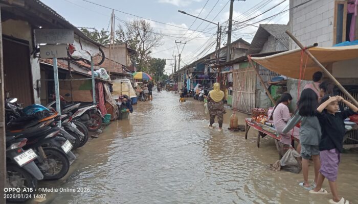 idetik.id |CIKARANG TIMUR – Kondisi banjir di Desa Labansari, Kecamatan Cikarang Timur, terus mendapat perhatian serius dari jajaran otoritas setempat. Pada Sabtu (24/01/2026), Sekretaris Kecamatan (Sekcam) Cikarang Timur, H. Aris Sadikin Asnawi, SE., MM., bersama Danramil 08 Lemah Abang, Mayor Inf. Sukoco, turun langsung ke lapangan untuk memantau titik-titik terdampak luapan air.