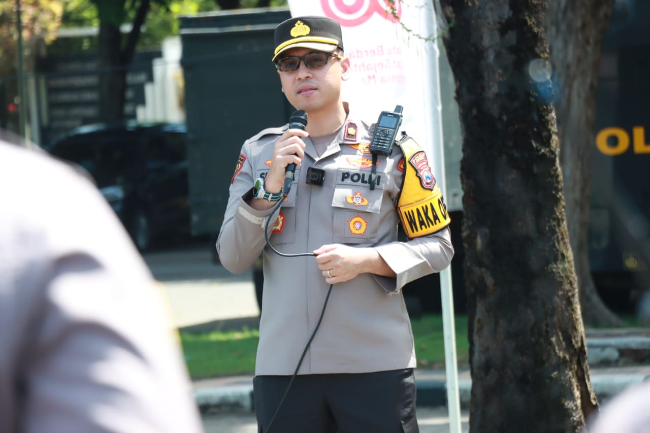 Sebelum massa aksi tiba, Wakapolres Gresik Kompol Shabda Purusha Putra memimpin apel pengamanan dan menegaskan bahwa tugas aparat adalah memberi pelayanan, bukan membatasi ruang demokrasi buruh.