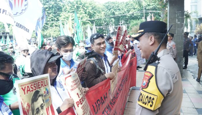 Dengan Pengamanan Humanis, Aksi Buruh Gresik Berjalan Damai dan Kondusif