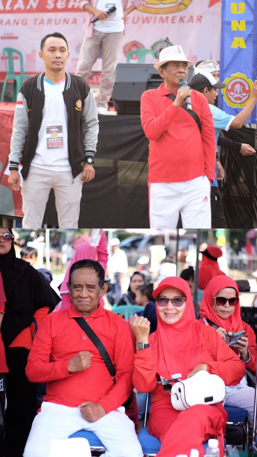 “alhamdulilah dalam acara ini masyarakat sangat antusias sekali karena ini belum apa apa ke depan akan melebihi target tiga ribu para peserta serta berharap untuk agenda kedepan insya Allah kalau memang situasi dan kondisi memadai maka akan digelar kembali acara seperti ini bersama karang taruna dan para pemuda “Harapnya nya kepala desa leuwimekar ketika mengikuti jalan sehat .