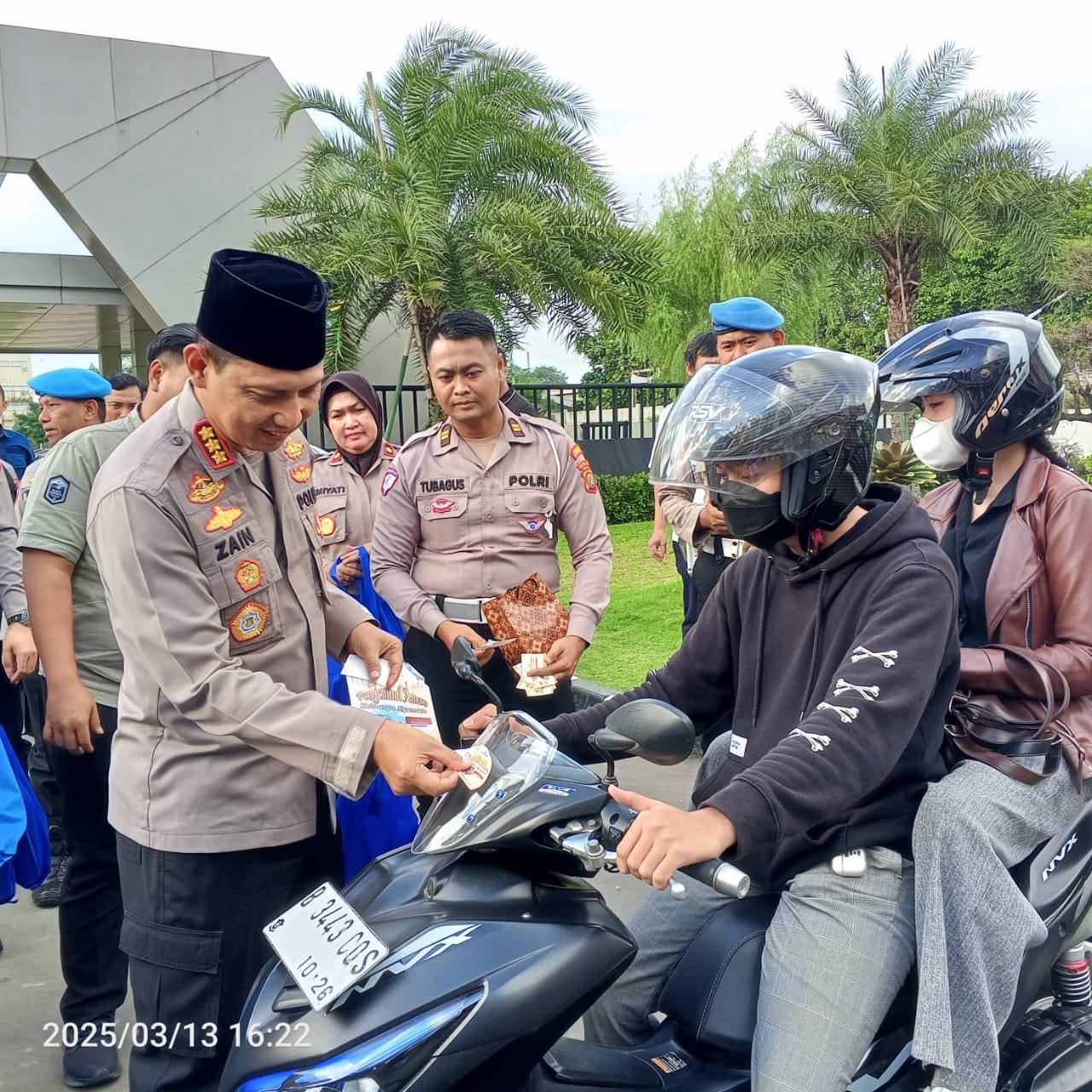 Dalam kesempatan tersebut, Zain memberikan beberapa himbauan kepada para pengemudi yang akan mudik baik yang menggunakan kendaraan roda dua maupun roda 4 sekaligus menempelkan sticker himbauan mudik.