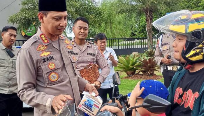 “Tujuan dari kegiatan ini adalah agar kita semua merasakan kebahagiaan di bulan Ramadhan ini. Salah satunya adalah dengan membagikan takjil kepada masyarakat yang melintas di depan kantor kami (Polres Metro Tangerang Kota-red). Kami juga mengingatkan kepada masyarakat yang akan mudik bahwa kami telah menyiapkan layanan pengaduan dan pelayanan melalui nomor hotline 110 diseluruh Indonesia,” terang Zain.
