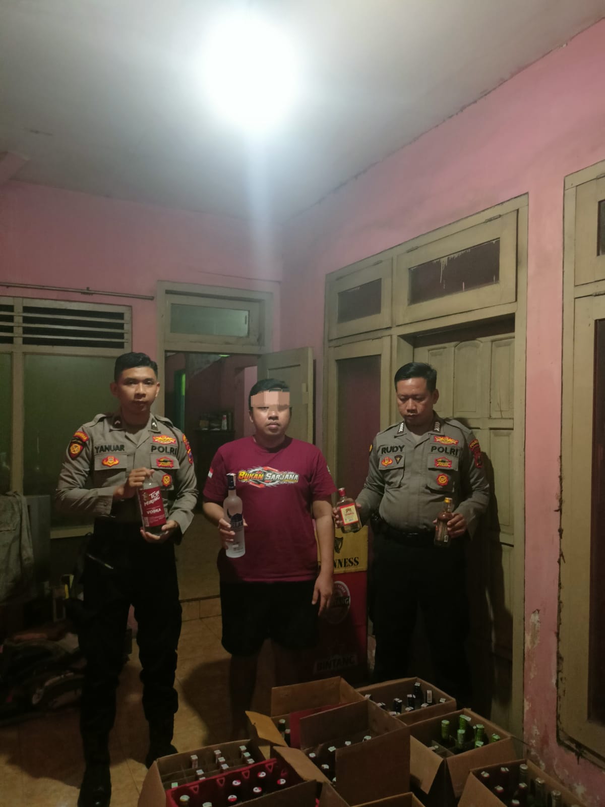 Polisi berhasil menyita berbagai jenis miras diantaranya jenis Ice Land, Vodka, Bintang, Anggur Merah, Singaraja, Topi Miring, Bir Api, Kawa Kawa, Frost, Anggur Ginseng, Whisky, Guines, Alexis, Arbal.