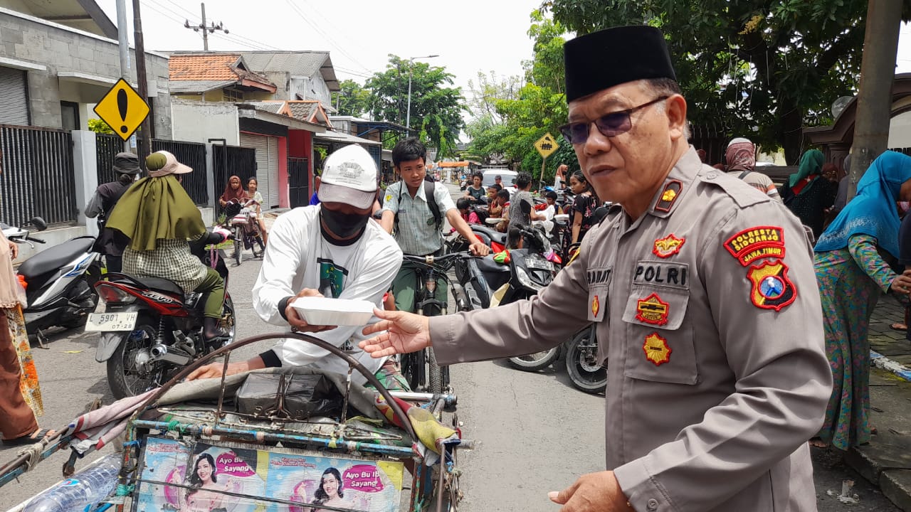 Turut membagikan nasi Jumat Berkah kepada masyarakat Kapolsek Taman Kompol Rochsulullah dan Wakapolsek Taman Kompol Samat. Ia menyampaikan kegiatan Jumat Berkah merupakan upaya yang dilakukan untuk membangun jiwa sosial kepada anggota.