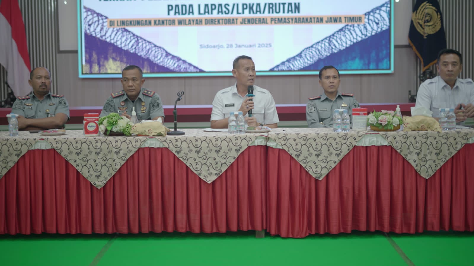 idetik.id | SURABAYA – Dalam upaya meningkatkan kualitas pelayanan bagi Warga Binaan Pemasyarakatan (WBP), Kantor Wilayah Direktorat Jenderal Pemasyarakatan Jawa Timur menggelar kegiatan pengarahan terkait pelaksanaan penyediaan bahan makanan di Lembaga Pemasyarakatan (Lapas), Lembaga Pembinaan Khusus Anak (LPKA) dan Rumah Tahanan Negara (Rutan), Selasa (28/1). Acara berlangsung di Aula MD Arifin, Lapas Kelas I Surabaya, dengan dihadiri oleh seluruh Kepala Unit Pelaksana Teknis (UPT) Pemasyarakatan dan penyedia bahan makanan se-Jawa Timur.