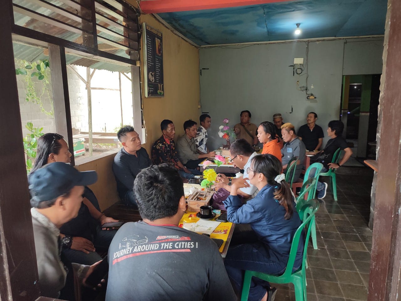 idetik.id | BOJONEGORO – Suasana penuh keakraban terasa di Warung Kopi KAUDE (KUD) Belakang Koramil Sumberrejo, Kabupaten Bojonegoro, pada Sabtu pagi (5/4/2025).