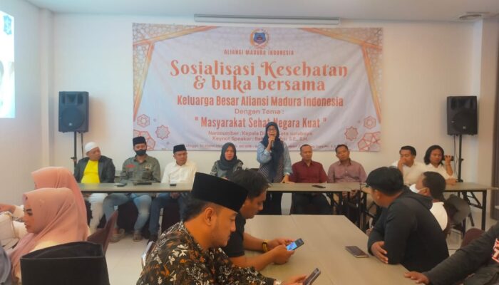idetik.id |Surabaya – Keluarga Besar Aliansi Madura Indonesia menggelar acara bukber sekaligus giat sosialisasi kesehatan dengan tema “Masyarakat Sehat Negara Kuat” di Amaris Hotel, Jl. Kedung Doro No. 1-3, Surabaya.Minggu sore, (23/3/2025).