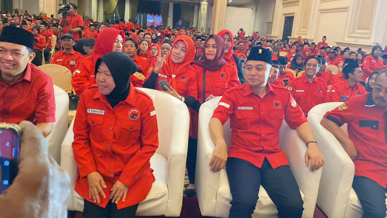 “Ketika Bu Ketum (Megawati Soekarnoputri) sudah memerintahkan, menugaskan Bu Risma dan Gus Hans sebagai Gubernur Jawa Timur, saya dan Pak Armuji sebagai Wali Kota dan Wakil Wali Kota Surabaya, maka tidak ada pilihan. Ketika jubah kita merah, darah kita merah, siap menangkan Bu Risma, Eri-Armuji,” tegas Eri, dalam Rapat Kerja Cabang Khusus (Rakercabsus) PDIP Surabaya yang berlangsung di Hotel Empire Surabaya pada Kamis (19/9/2024).