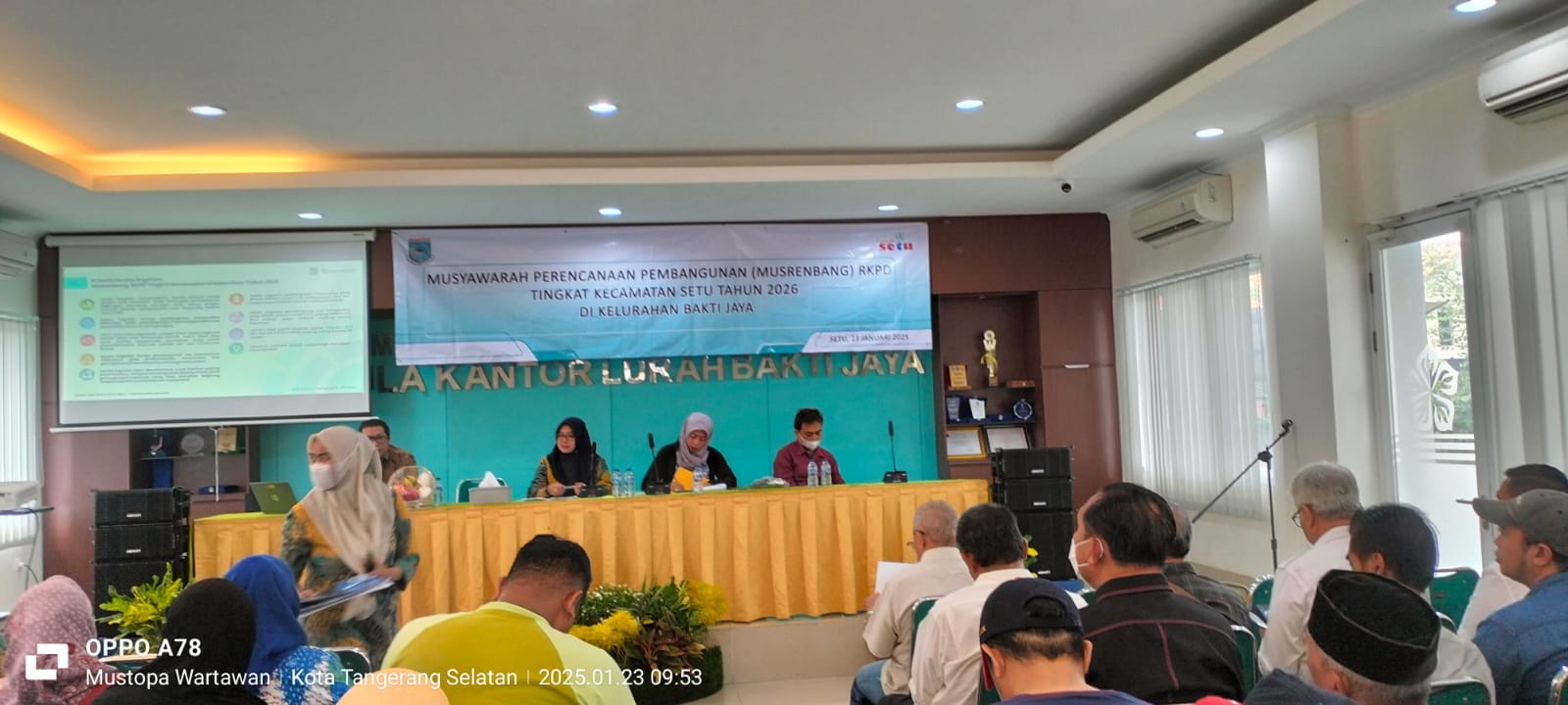 idetik.id | Tangerang Selatan – kelurahan Bakti jaya kecematan setu menggelar musyawarah perencanaan pembangunan (Musrenbang ) Tingkat kelurahan Tahun 2026, bertempat di Aula kantor kelurahan Bakti jaya jln pocis, Setu kota Tangerang selatan, Kamis (23/1/2025)