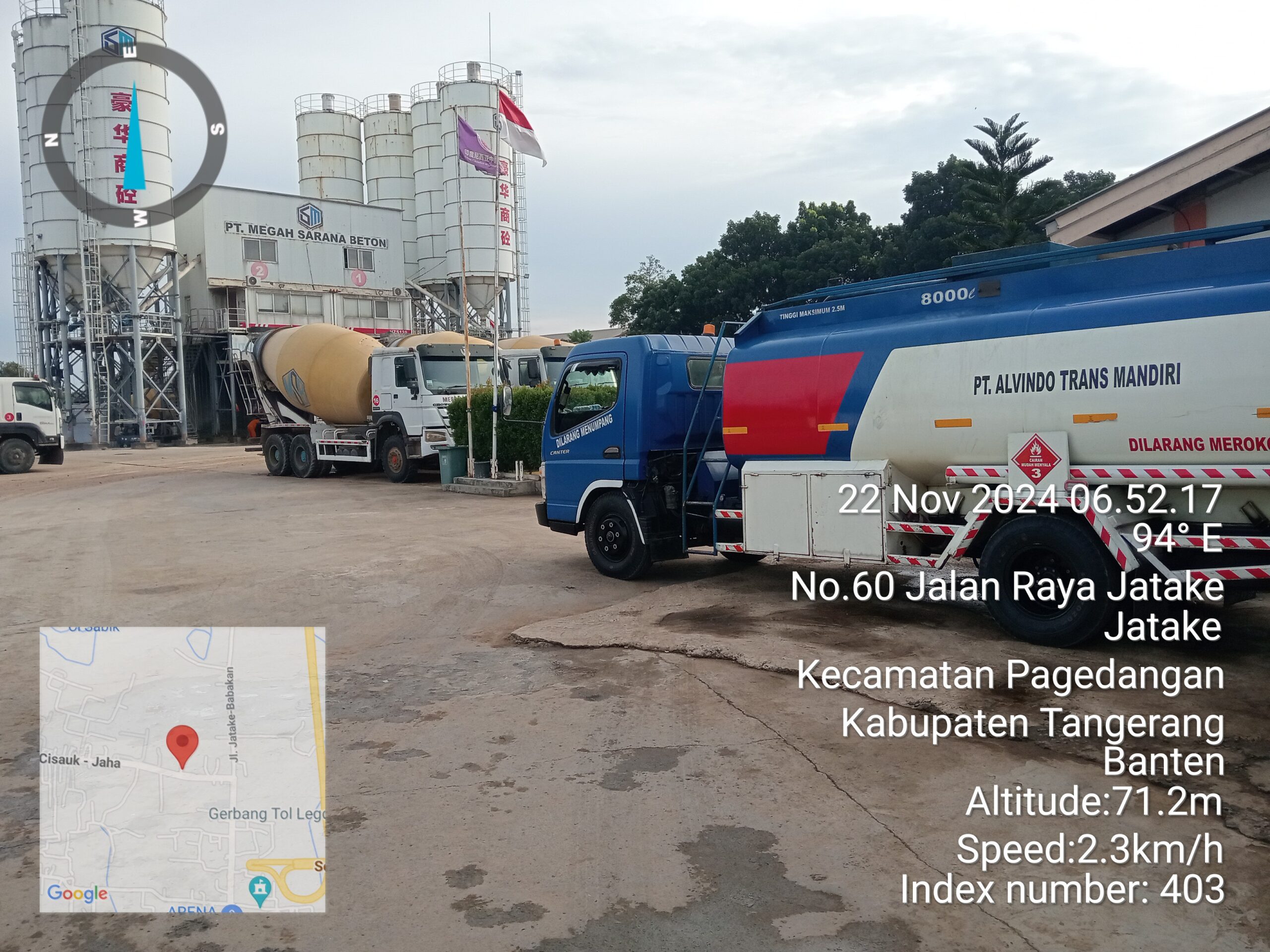 Sslah satu mobil transporter PT Alvindo Trans Mandiri berisi 8ton (BBM) diduga illegal yang sedang mengirim solar industri ke salah satu Plan coran ke PT.Megah Sarana Beton yang berlokasi di desa Jatake Kecamatan Pagedangan Kabupaten Tangerang Banten.