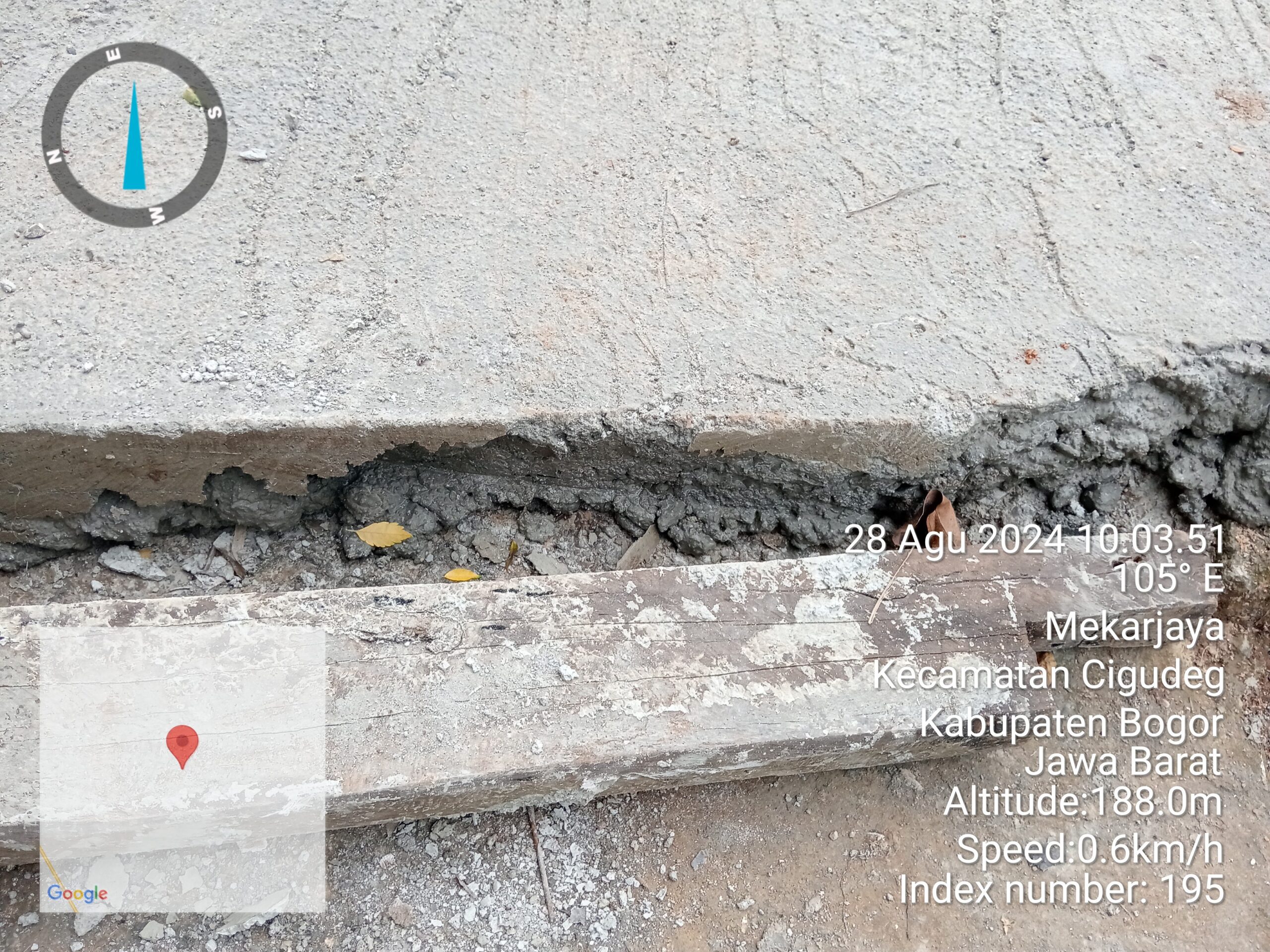 idetik.id |Bogor Barat – Pekerjaan pengecoran peningkatan jalan lingkungan yang berada di kampung Toge Tipar RT 04/05 Desa Mekarjaya Kecamatan Cigudeg Kabupaten Bogor diduga tidak sesuai spesifikasi.