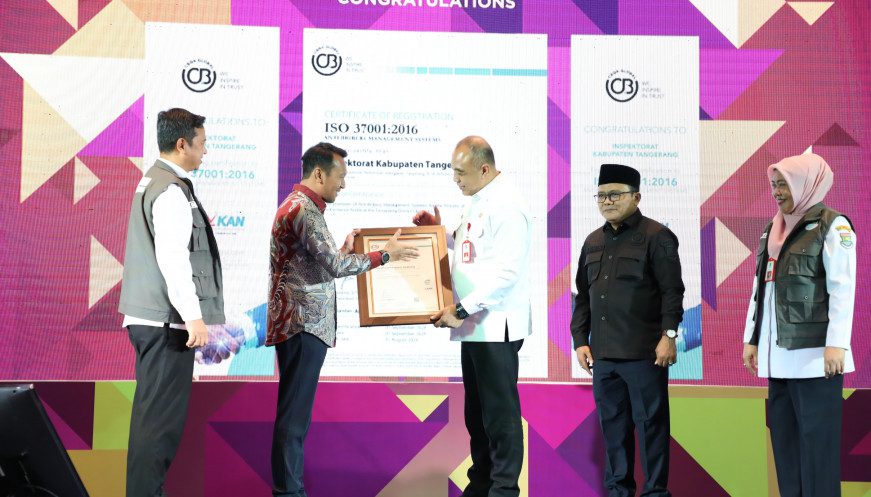 “Alhamdulillah Kabupaten Tangerang melalui Inspektorat adalah instansi pertama di Provinsi Banten yang mendapatkan sertifikat ISO 37001: 2016,” ungkapnya.