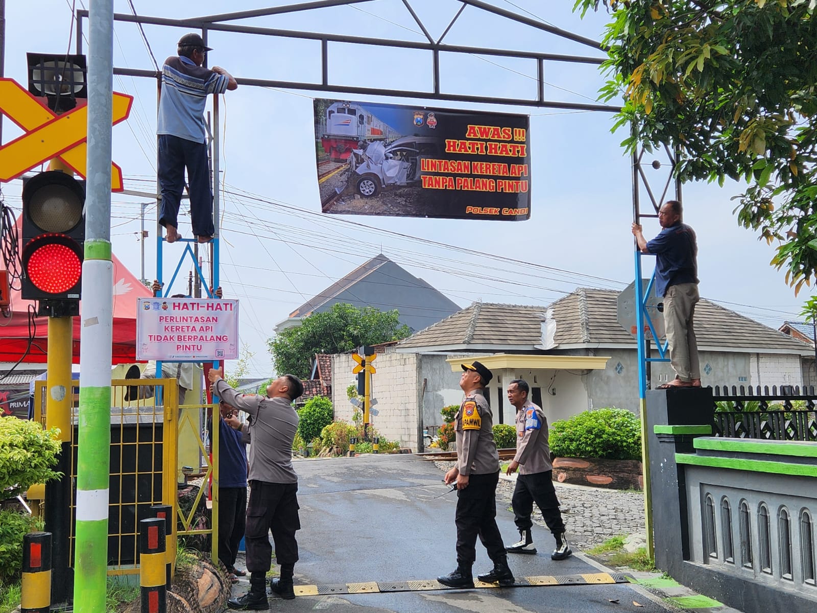 Seperti dilakukan Kapolsek Candi Polresta Sidoarjo Kompol Eka Anggriana bersama anggotanya turun langsung memasang himbauan tersebut pada Kamis (27/3/2025). Antara lain, di pintu perlintasan Kereta Api tanpa palang Desa Gelam, Desa Tenggulunan dan Desa Sumokali.