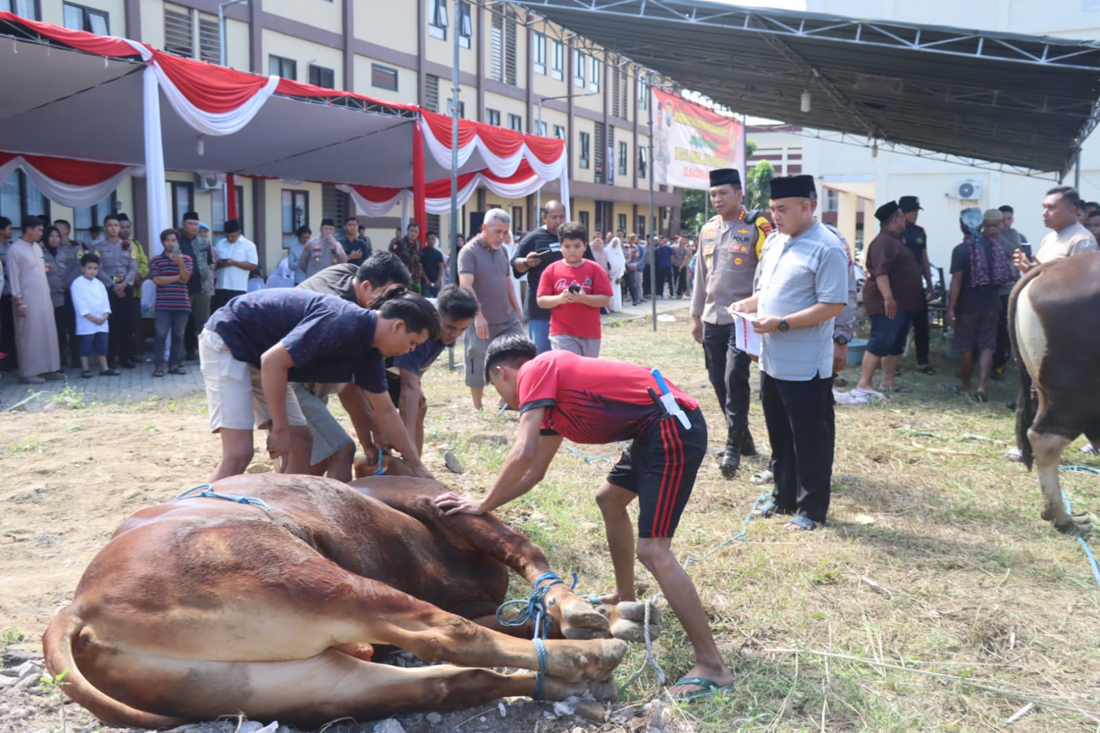 idetik.id | Sidoarjo – Polresta Sidoarjo melaksanakan penyembelihan dan penyaluran hewan kurban Hari Raya Idul Adha 1445 Hijriyah tahun 2024 kepada masyarakat, Senin (17/6/2024) di Mako Polresta Sidoarjo.