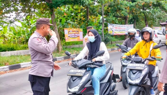 idetik.id | Sidoarjo – Polisi mengedukasi pengendara yang tidak memakai helm SNI saat melintas di Jalan Raya Pulungan, Sedati, Sidoarjo, Kamis (20/2/2025).