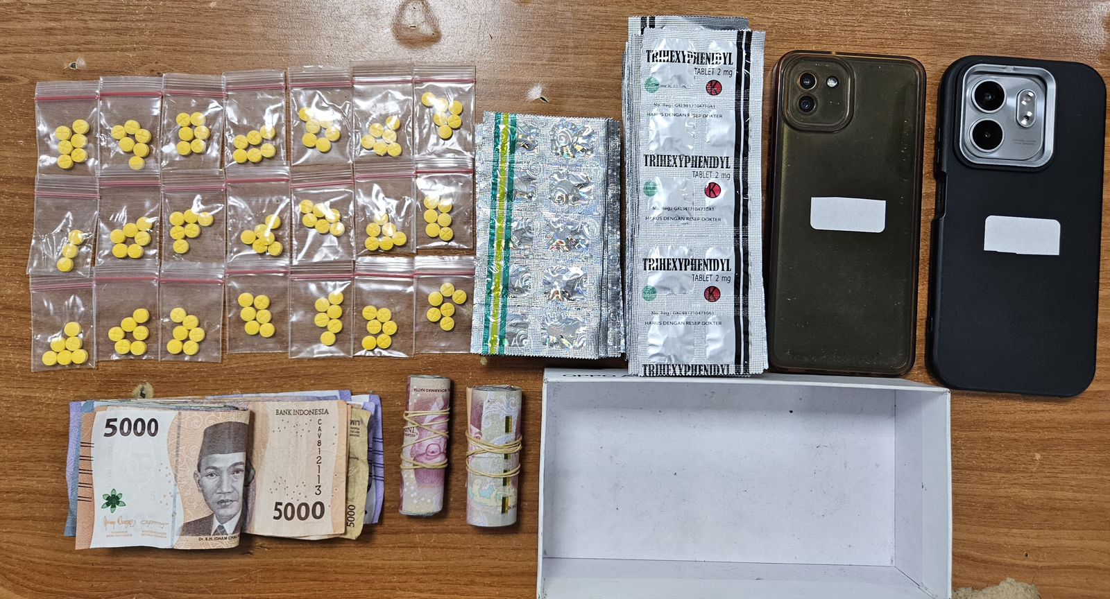 Kedua pelaku yang diamankan berinisial SA (25), warga Kota Lhokseumawe, dan R (23), warga Kabupaten Aceh Utara. Dari tangan pelaku, petugas menyita barang bukti berupa 80 butir obat Tramadol, 123 butir obat Hexymer, 150 butir obat Trihexyphenidyl, uang tunai Rp 2.030.000, sebuah kotak warna putih, dan dua unit telepon genggam.