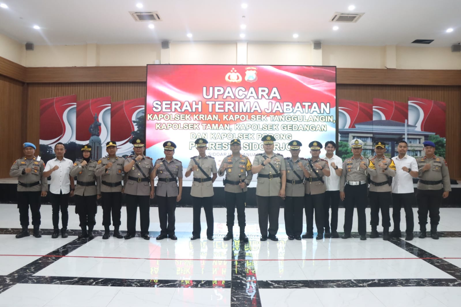 idetik.id | Sidoarjo – Lima Kapolsek di wilayah hukum Polresta Sidoarjo mengalami pergantian. Antara lain Kapolsek Krian, Tanggulangin, Taman, Gedangan dan Porong.