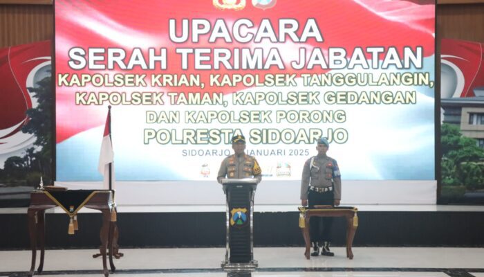 Kelima pejabat Kapolsek tersebut secara resmi melakukan serah terima jabatan pada Rabu (8/1/2025) di Gedung Serbag Guna Polresta Sidoarjo, dalam upacara yang dipimpin Kapolresta Sidoarjo Kombes. Pol. Christian Tobing.