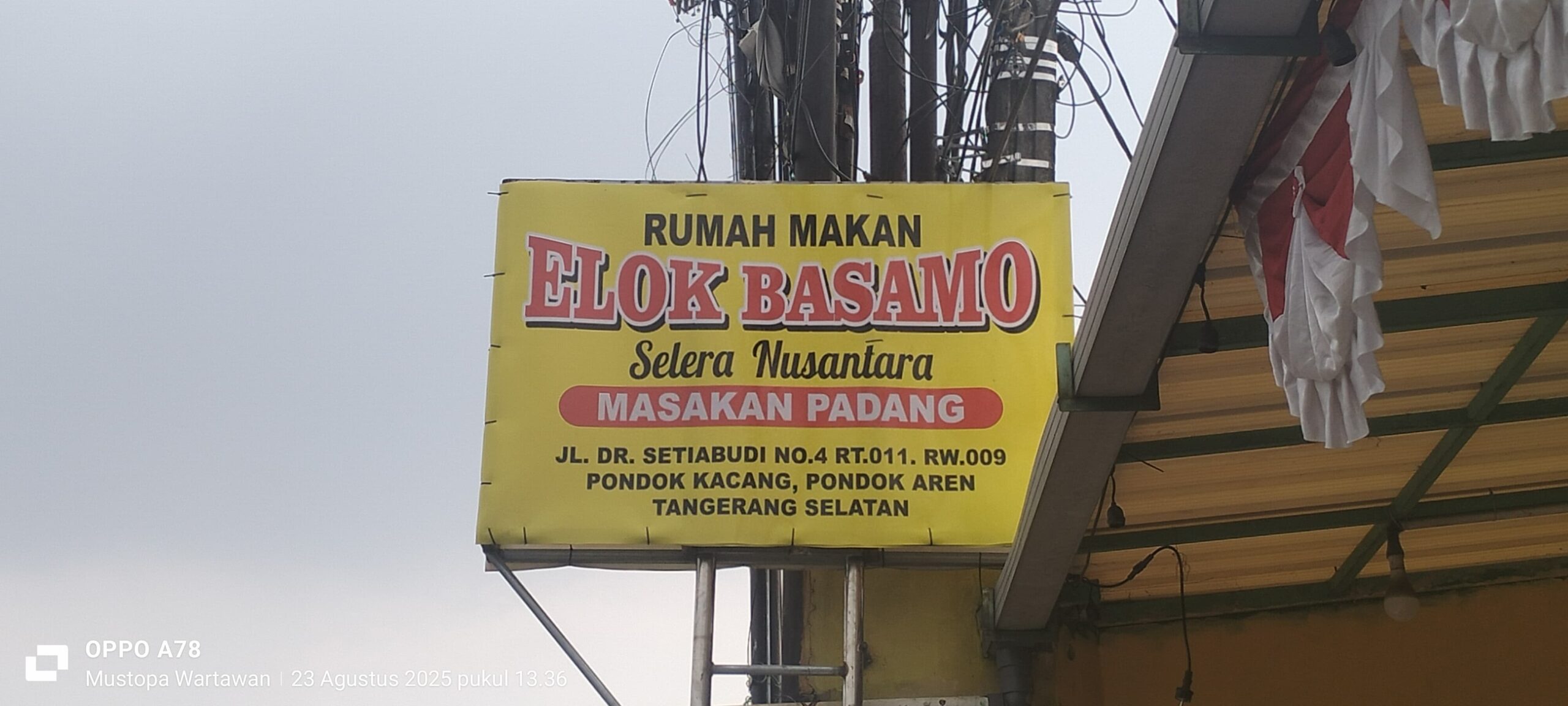 idetik.id| Tangerang Selatan – Bagi para pecinta kuliner selera Nusantara,khususnya Rumah makan Padang Elok Basamo ini sangat selera Nusantara silahkan datang di jalan Dr.Setiabudi,pondok kacang,pondok aren kota Tangerang selatan.dengan bumbu yang pas serta kebersihan serta bergizi dan bervitamin sudah tentu dibuat oleh orang Padang asli.