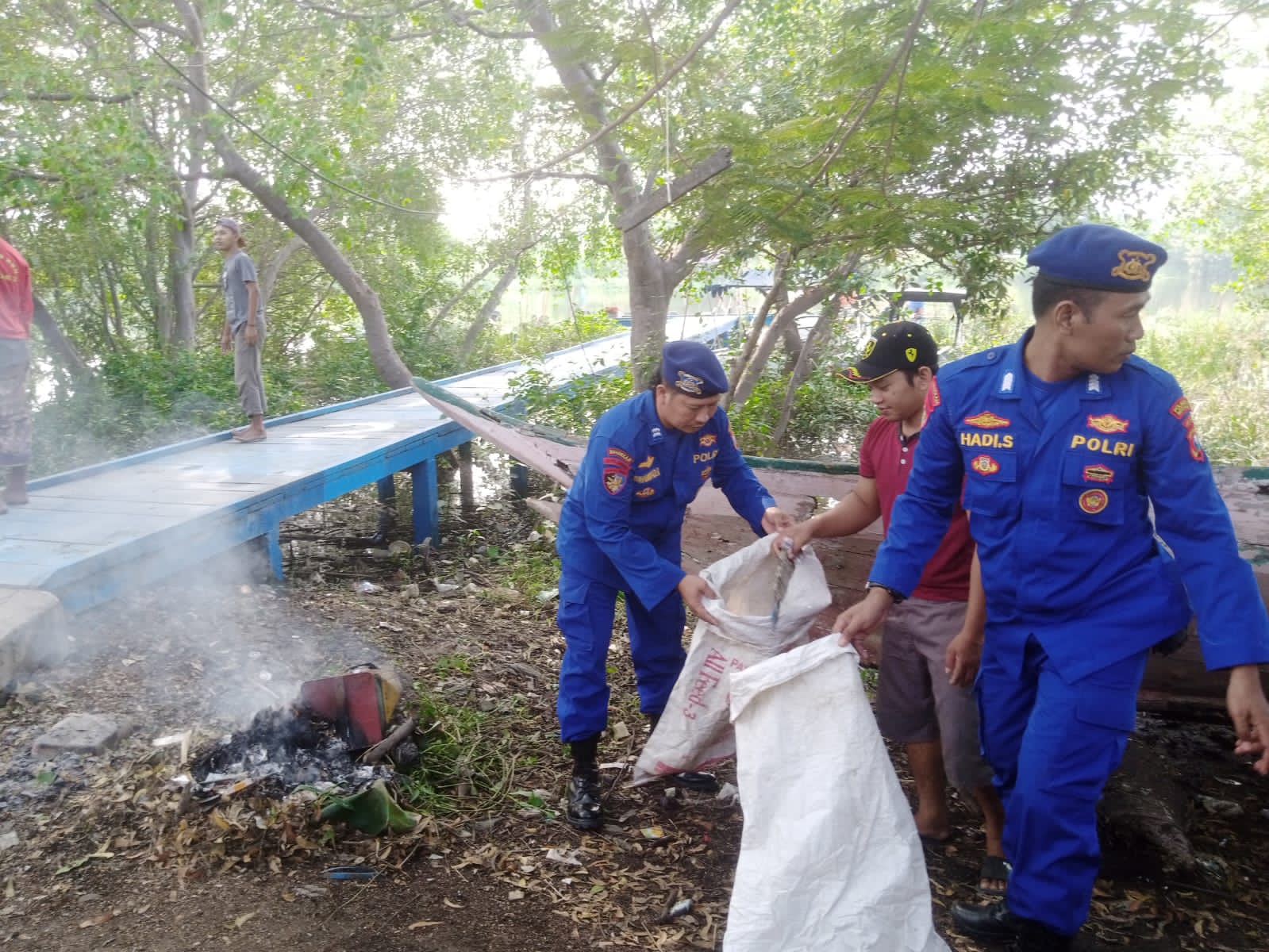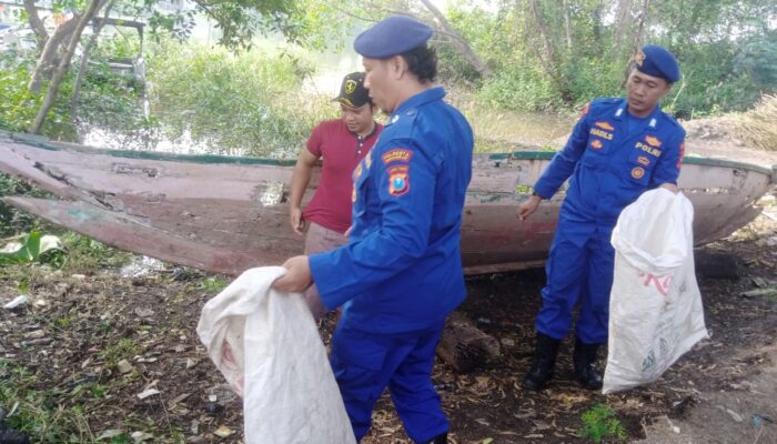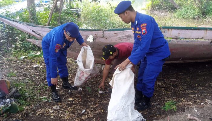 Satpolairud Polresta Sidoarjo bersama Nelayan Bersihkan Sampah di Kawasan Pesisir