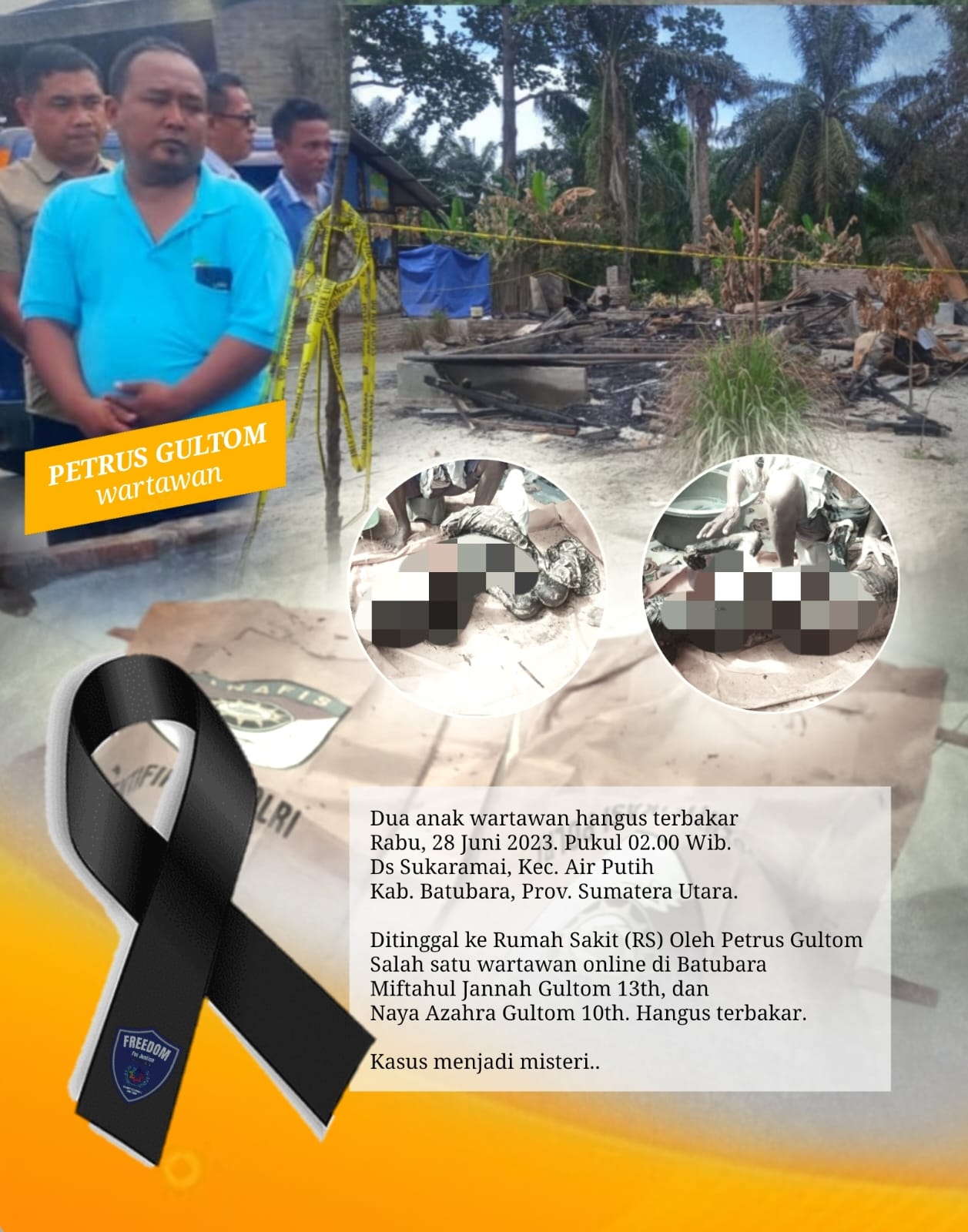 Tragedi itu masih menjadi misteri, dan terngiang bagi keluarga Gultom, belum genap satu tahun lalu di Desa Sukaramai, Kecamatan Air Putih Kabupaten Batubara, Provinsi Sumatera Utara, tepatnya pada hari Rabu, 28 Juni 2023.