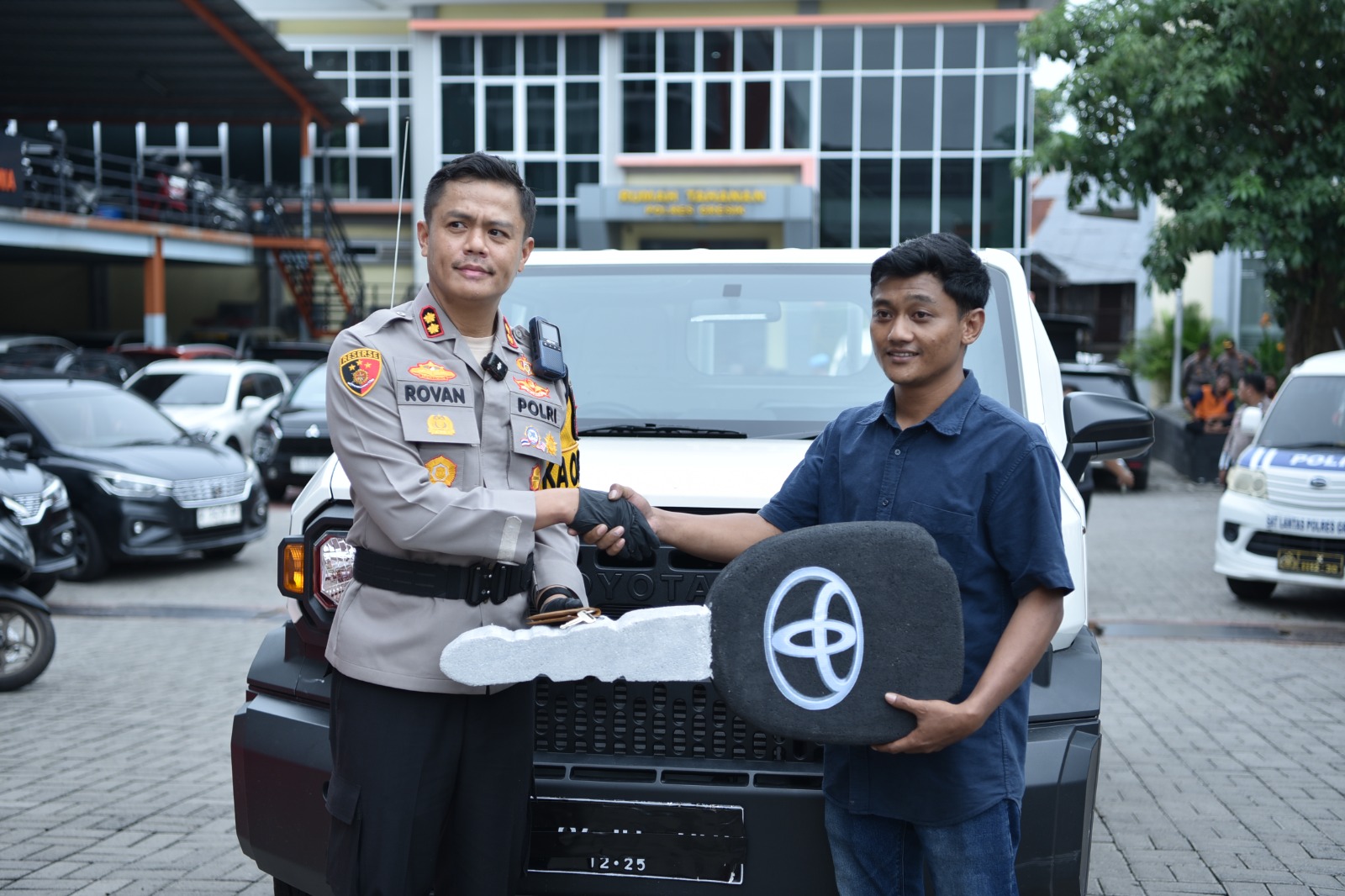 Momen humanis juga terlihat saat Kapolres Gresik menyerahkan kembali satu unit mobil hasil kejahatan kepada pemiliknya secara gratis.