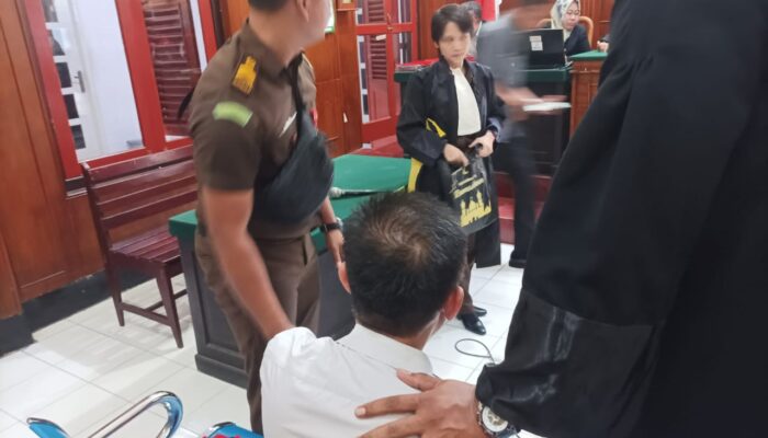 idetik.id| Surabaya – Terdakwa Effendi Pudjihartono pemilik restoran Sangria by Pianoza, terjatuh kehilangan keseimbangan dan keluar dari ruang persidangan Kartika 2 pada Pengadilan Negeri (PN) Surabaya menggunakan kursi roda.