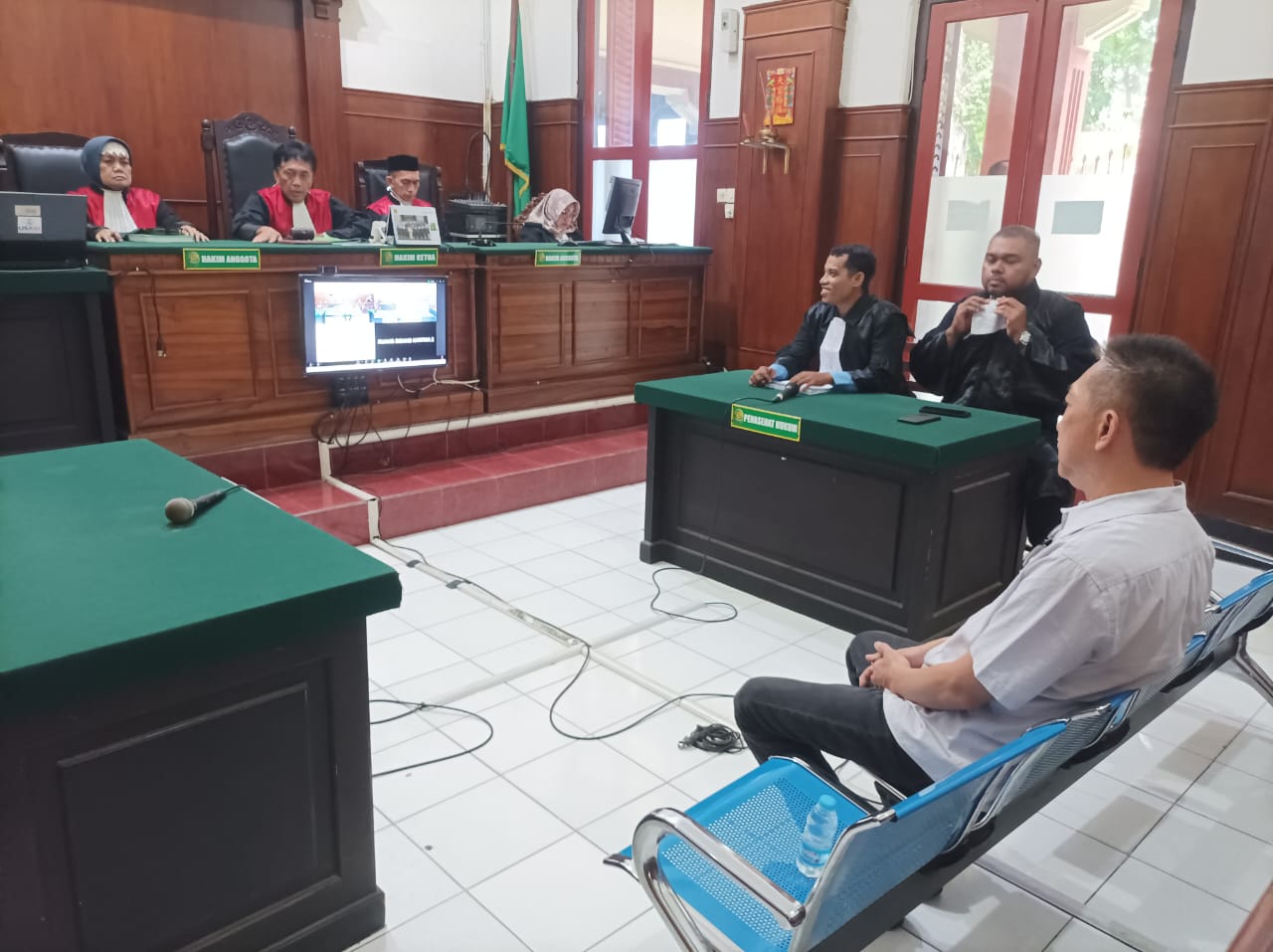 Kejadian memprihatinkan itu terjadi pada saat Mejelis Hakim menunda persidangan dikarenakan saksi Notaris Ferry Gunawan tidak hadir dalam persidangan. Senin (24/2) siang.