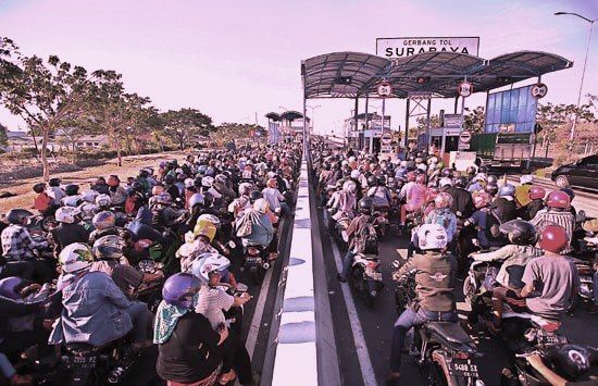 Kepadatan di akses Surabaya karena ribuan masyarakat melaksanakan tradisi toron atau mudik untuk memperingati Iduladha 1445 H.
